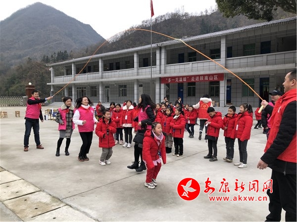 最后,共青團安康市委書記盧存安、安康市中醫(yī)院黨委副書記、副院長胡章學和“暖流計劃”志愿者們與孩子們進行了跳繩活動。