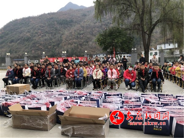 本網訊(通訊員 陳群)12月7日,共青團安康市委、市中醫(yī)醫(yī)院團委攜手“暖流計劃”開展“多一克溫暖”公益活動走進旬陽縣仁河口鎮(zhèn)水泉坪小學,為孩子們送去了溫暖。