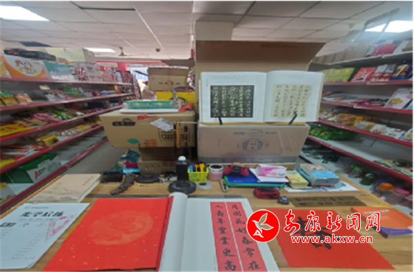 走進(jìn)店里,除了琳瑯滿目的商品外,貨架旁還放置了一張桌子,那是沈古頂日常練習(xí)書(shū)法的地方。他每天都會(huì)抽出兩到三小時(shí)練字,從不落下一天。常有老顧客向他求墨寶,他總是欣然答應(yīng),為顧客認(rèn)真寫(xiě)好每幅字。近年,縣煙草公司在商戶中成立了誠(chéng)信經(jīng)營(yíng)互助組織,沈古頂?shù)?ldquo;字謎”隊(duì)伍更加壯大了。他不但用書(shū)法為自己筑就了一方桃花源,也在大家之間架起了一座促進(jìn)交流、建立友誼的連心橋。