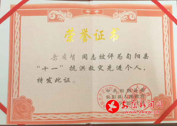 而岳有智也用自己的實際行動真正詮釋了軍人“退伍不褪色”的內(nèi)涵,被組織表彰為“抗洪救災(zāi)先進(jìn)個人”。