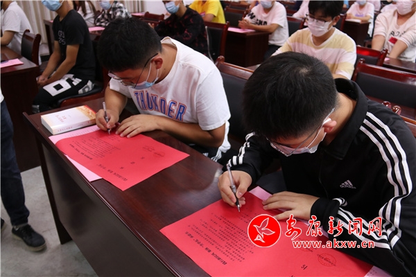 升學(xué)禮上,宣讀了“踐行新民風(fēng),集體升學(xué)禮”倡議書,呼吁各位家長和學(xué)生積極響應(yīng),以身作則,以實(shí)際行動(dòng)踐行新民風(fēng)。并精心準(zhǔn)備了行李箱、書籍等生活用品。
