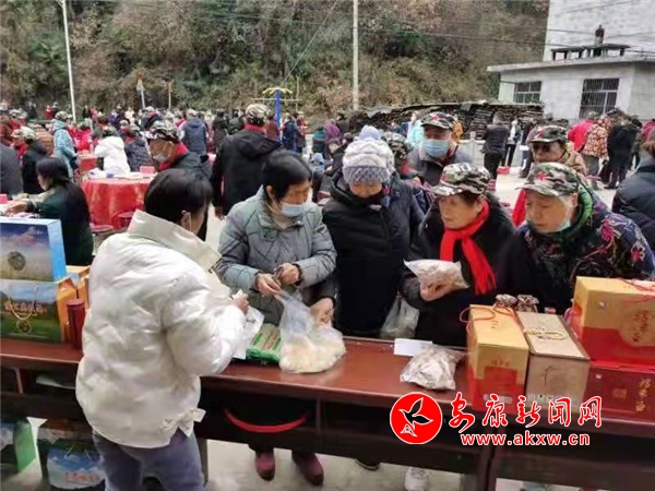 本網(wǎng)訊(通訊員 李響)12月的旬陽市桐木鎮(zhèn)涌泉村,陣陣寒風(fēng)帶來入冬的寒意,小河潺潺的流水伴隨裊裊炊煙,盡顯一片祥和幽靜的山村景象。13日,小山村突然熱鬧了起來,涌泉村群眾活動廣場上人頭攢動,熱鬧非凡,紅艷艷的干辣椒、金燦燦的干黃花、亮晶晶的手工魔芋……這些地地道道的農(nóng)家土特產(chǎn)依次整齊排列,現(xiàn)宰的土豬、農(nóng)家的臘肉、本地的山核桃、香甜的土蜂蜜,映入眼簾的是琳瑯滿目。今天是涌泉村舉辦農(nóng)產(chǎn)品展銷會的日子,家家戶戶都早早地帶上家里的農(nóng)產(chǎn)品來選攤位了,希望能賣個(gè)好價(jià)錢。