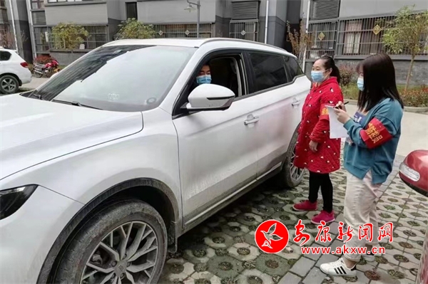 網(wǎng)格員在社區(qū)宣傳疫情防控相關(guān)知識(shí)
