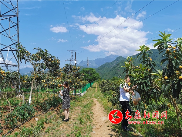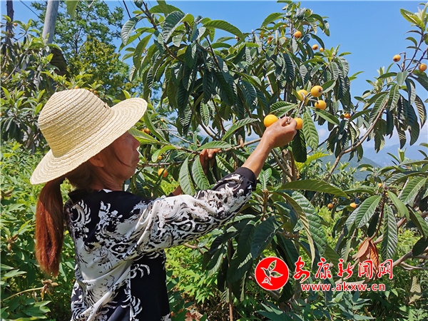 果農們正忙著采摘、包裝、發(fā)運,臉上寫滿了豐收的喜悅。果農楊作芳正在地里采摘枇杷,只見她左手挎著果籃,右手抓住枝丫,熟練地將一顆顆枇杷摘下來,看到品相特別好的,她就拿起來展示一下,“你看這幾顆又大又圓,熟透了,絕對特別甜。”她從2016年開始流轉自己的土地給合作社種植枇杷,總共種了16畝。“今年的枇杷剛剛成熟,掛果比去年還多。我摘一天給我發(fā)100元工資,枇杷一斤可以賣到10塊錢,等枇杷都賣了,我能穩(wěn)穩(wěn)賺到4萬多呢。”剛從地里采摘完枇杷正在裝箱的楊作芳談及枇杷給她帶來的收益樂開了花。在枇杷園內除了果農外,也引得不少游人前來觀光采摘。