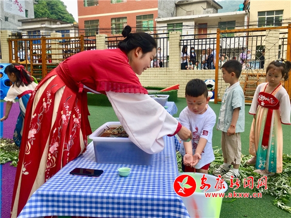 本網(wǎng)訊(通訊員 楊婷 劉榮好)濃濃艾草香,暖暖端午情。為傳承和弘揚(yáng)優(yōu)秀傳統(tǒng)文化,讓孩子們了解、感受端午節(jié)豐富的文化內(nèi)涵。6月2日,旬陽(yáng)市赤巖鎮(zhèn)中心幼兒園開(kāi)展了“品味端午 傳承文明”系列主題活動(dòng),演繹了一場(chǎng)傳統(tǒng)文化的“盛宴”。
