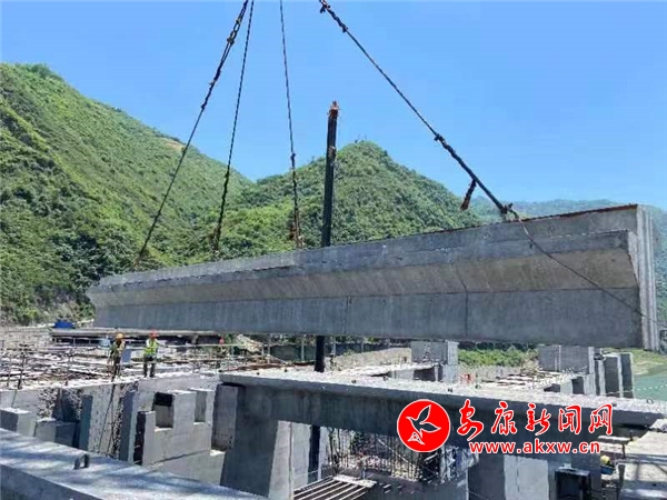 本網(wǎng)訊(通訊員 王建華 陳潔)2022年6月14日20時51分,隨著旬陽水電站大壩標(biāo)七號孔最后一榀交通梁吊裝到位,右岸壩頂交通梁全部架設(shè)完成,標(biāo)志著旬陽水電站全長462米的大壩實現(xiàn)了全線貫通。