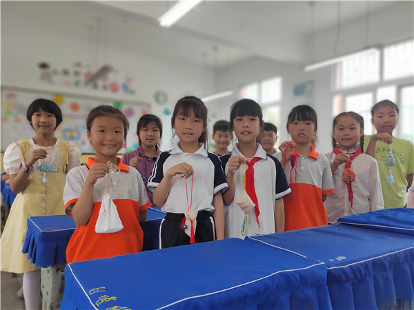為確;顒禹樌_展,學校提前謀劃,合理布局活動場地,做好氛圍營造和現(xiàn)場引導。餐廳免費為學生提供香粽、雞蛋等。活動現(xiàn)場,全校師生誦經(jīng)典,寄語雙小;話民俗,感悟端午文化;縫制香包,展示端午小報,體味民俗風情。不少同學紛紛表示,從未親手縫過香包,雖然縫的不太好,但是通過學習針線技巧,既掌握了生活本領(lǐng),又能切身體會傳統(tǒng)文化,一舉雙得,很有意義。“這是我小學生涯最后一次在雙小過端午節(jié),學校餐廳每年開展的端午送粽子活動,使我們感受到了家一般的溫暖,十分有意義!”一位即將畢業(yè)的同學談出了切身體會。