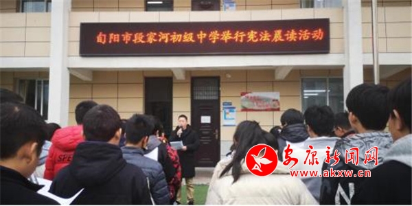 學(xué)校里,開展憲法晨讀,全體師生共同參與,同步跟讀憲法條款,讓學(xué)生通過學(xué)習(xí)憲法的基本原則和基本知識(shí),感受憲法精神,體悟憲法威嚴(yán),在校內(nèi)形成“積極宣傳憲法、尊崇憲法、維護(hù)憲法,弘揚(yáng)憲法精神,樹立憲法權(quán)威,增強(qiáng)法治觀念”的新風(fēng)尚。