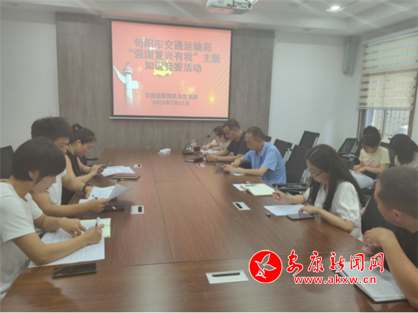 本網(wǎng)訊 為深入學(xué)習(xí)貫徹黨的二十大精神,深化“強(qiáng)國(guó)復(fù)興有我”群眾性主題宣傳教育活動(dòng),進(jìn)一步激發(fā)系統(tǒng)黨員群眾愛(ài)黨、愛(ài)國(guó)熱情,教育引導(dǎo)黨員群眾堅(jiān)定理想信念,凝聚奮進(jìn)力量,筑牢初心使命;激發(fā)黨員群眾干事創(chuàng)業(yè)激情,牢固樹(shù)立高質(zhì)量項(xiàng)目建設(shè)和高品質(zhì)運(yùn)輸服務(wù)“雙高”理念。近日,旬陽(yáng)市交通運(yùn)輸局結(jié)合主題黨日活動(dòng),突擊組織機(jī)關(guān)30余名黨員干部開(kāi)展“強(qiáng)國(guó)復(fù)興有我”主題宣傳教育知識(shí)競(jìng)答活動(dòng)。