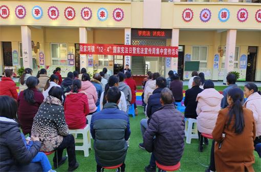 本網(wǎng)訊(通訊員 呂小寧)12月4日,旬陽(yáng)市段家河幼兒園里熱鬧非凡,來(lái)自司法所、派出所、社治辦的工作人員通過(guò)問(wèn)答互動(dòng),向小朋友和家長(zhǎng)普及憲法知識(shí),將法治觀念根植于心,并通過(guò)一系列和生活息息相關(guān)的法律知識(shí)解讀,提升教職工及家長(zhǎng)的法治意識(shí)。