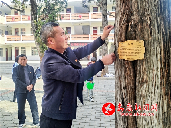 本網(wǎng)訊(通訊員 潘文進(jìn))3月12日,旬陽(yáng)市廟坪九年制學(xué)校20余名共青團(tuán)員學(xué)生志愿者,在黨員教師的帶領(lǐng)下,共同為該校園里的古樹(shù)名木掛牌。