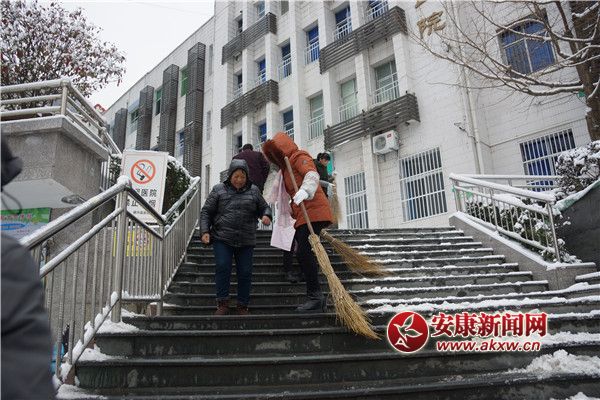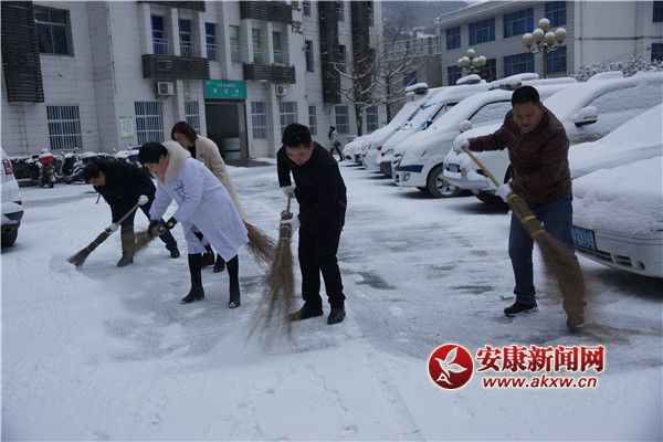安康新聞網(wǎng)訊(通訊員 杜波兒 楊云波)2018年 1月4日,迎來了新年的第一場大雪,為百姓們帶來美麗雪景的同時也給來院就診的患者帶來諸多不便。當(dāng)你在賞雪景,曬美照時,鎮(zhèn)坪縣醫(yī)院院辦七點(diǎn)多就來到醫(yī)院,組織行政、后勤醫(yī)護(hù)人員掃雪除冰,全力保障患者安全就醫(yī),確保醫(yī)療工作的正常運(yùn)轉(zhuǎn)。
