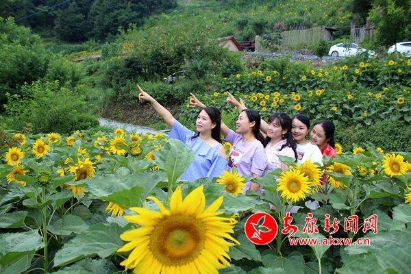 趁著周末,筆者走進(jìn)竹葉村,只見成片的油葵花迎著朝陽競(jìng)相綻放,裝扮著通村公路和田坎道路,處處是惹眼的金黃。微風(fēng)拂過,朵朵花盤迎風(fēng)搖曳,泛起陣陣黃綠相間的“浪花”。 不少游客在花海中打卡拍照留念,流連忘返。村里的農(nóng)家樂也是忙忙碌碌,客源不斷。