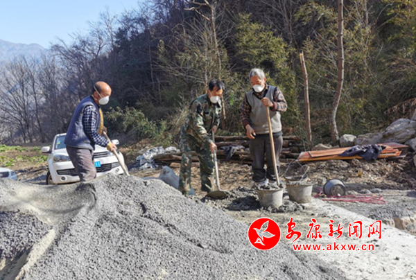 上竹鎮(zhèn)中心村肖家溝產(chǎn)業(yè)路復(fù)工,工人們戴著口罩做好防護(hù),忙得熱火朝天。這條產(chǎn)業(yè)路是打通中心村桂花苗圃的“最后一公里”。