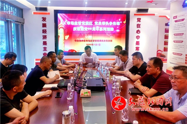 本網(wǎng)訊(通訊員 歐佩)7月1日,鎮(zhèn)坪縣市場(chǎng)監(jiān)督管理局機(jī)關(guān)黨支部組織開展“市場(chǎng)監(jiān)管黨旗紅 黨員帶頭爭先鋒”慶祝建黨99周年系列活動(dòng)。通過集中學(xué)習(xí)習(xí)近平總書記來陜考察重要講話重要指示精神、觀看微視頻《從紅船到巨輪》、重溫入黨誓詞、表彰10名疫情防控先進(jìn)個(gè)人、支部書記講黨課、開展黨建知識(shí)競賽等多種形式,共同慶祝建黨99周年。