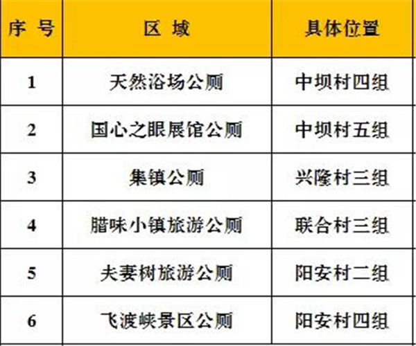 以下旅游公廁免費(fèi)對(duì)外開放: