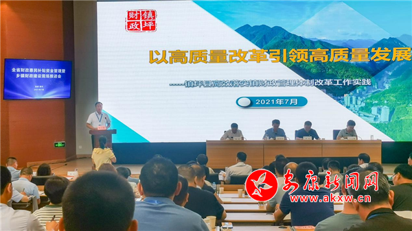 本網(wǎng)訊(通訊員 呂淅) 7月8日,全省鎮(zhèn)財(cái)政建設(shè)現(xiàn)場(chǎng)推進(jìn)會(huì)在陜西銅川照金干部學(xué)院召開(kāi),全省共2個(gè)縣作經(jīng)驗(yàn)交流發(fā)言,鎮(zhèn)坪縣作為全省唯一一個(gè)介紹鎮(zhèn)財(cái)政管理體制改革工作經(jīng)驗(yàn)的縣,縣財(cái)政局局長(zhǎng)丁濤同志在大會(huì)上介紹了鎮(zhèn)坪縣經(jīng)驗(yàn)。