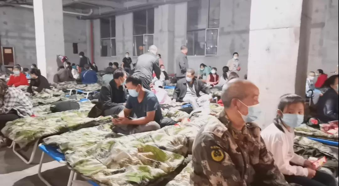 夜晚的廣場(chǎng)臨時(shí)安置點(diǎn)一樓燈光點(diǎn)點(diǎn),走進(jìn)屋內(nèi),一排排迷彩顏色的簡(jiǎn)易床和應(yīng)急物資映入眼簾,一個(gè)個(gè)公安民警、醫(yī)護(hù)人員、網(wǎng)格員和志愿者的身影在屋內(nèi)屋外忙碌地穿梭,為群眾搭建了一個(gè)暖心之家,從周邊社區(qū)隱患點(diǎn)撤離的居民就在這里臨時(shí)居住。