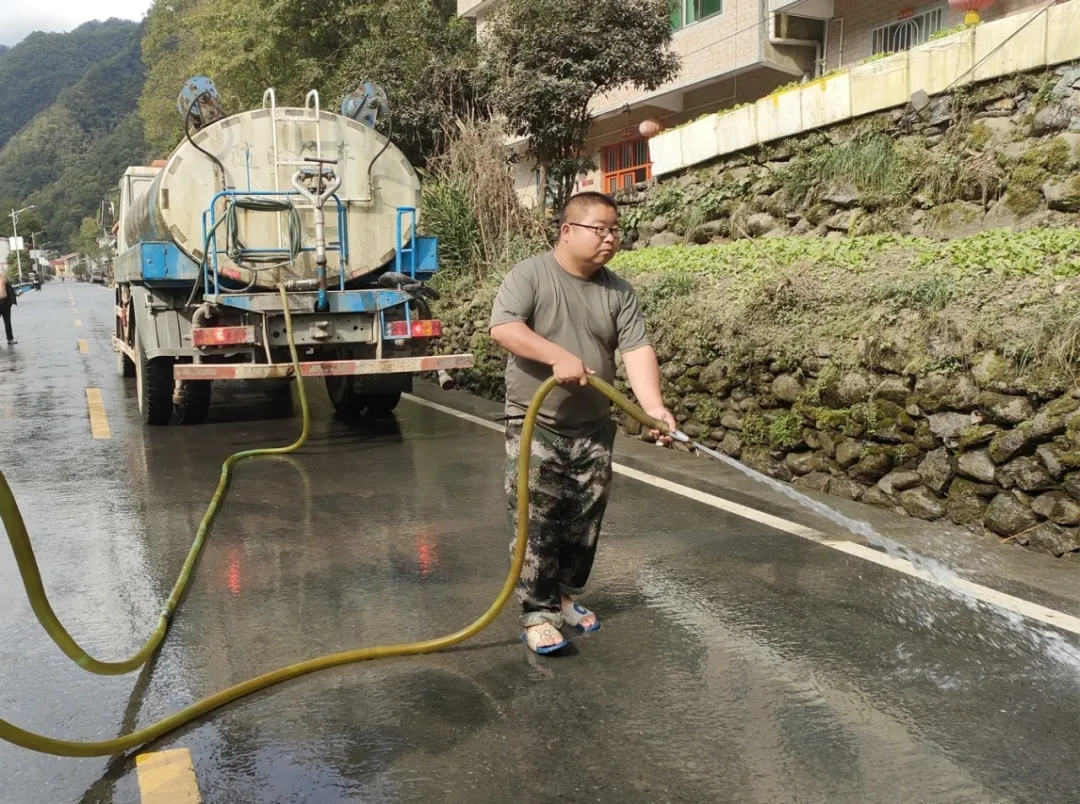 湘坪村駐村第一書記李芳洲在清洗路面tDF安康新聞網(wǎng)