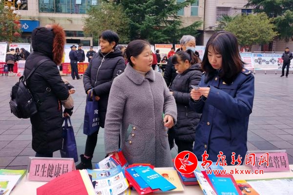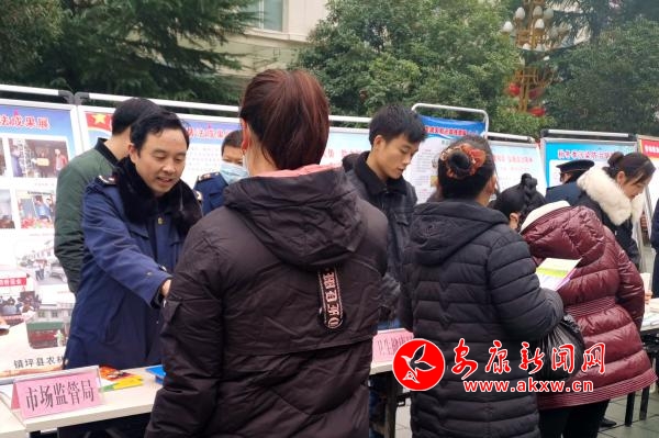 啟動(dòng)儀式結(jié)束后,32個(gè)相關(guān)部門(mén)圍繞“弘揚(yáng)憲法精神,建設(shè)法治鎮(zhèn)坪”的宣傳主題,按照統(tǒng)一安排,在鎮(zhèn)坪縣中心廣場(chǎng)集中開(kāi)展宣傳活動(dòng)。在做好憲法宣傳的同時(shí),鎮(zhèn)坪縣市場(chǎng)監(jiān)管局結(jié)合自身職能職責(zé),通過(guò)設(shè)立宣傳咨詢臺(tái)、懸掛標(biāo)語(yǔ)、擺放展板、發(fā)放宣傳資料等方式,開(kāi)展了市場(chǎng)監(jiān)管系統(tǒng)法律法規(guī)的宣傳和咨詢活動(dòng),大力宣傳《食品安全法》《藥品管理法》《消費(fèi)者權(quán)益保護(hù)法》《特種設(shè)備安全法》等法律法規(guī)知識(shí),積極向廣大群眾發(fā)放宣傳資料,熱情耐心地向咨詢?nèi)罕娦v食品藥品安全、偽劣產(chǎn)品鑒別等法律法規(guī)知識(shí),并告知群眾一些消費(fèi)注意事項(xiàng),提高群眾的識(shí)假辨假能力和依法維權(quán)意識(shí)。