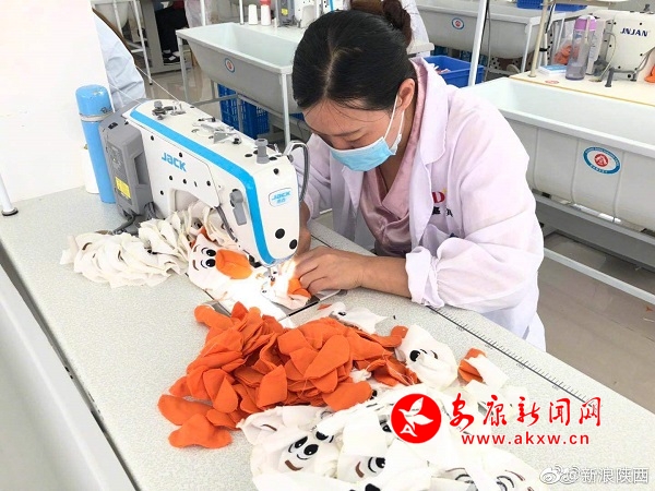 紫陽(yáng)縣毛壩鎮(zhèn)利用建設(shè)安置點(diǎn)形成的空閑場(chǎng)地,于2018年9月從江蘇省揚(yáng)州市引進(jìn)迪鑫玩具工廠,從事毛絨玩具生產(chǎn)加工。工廠里的員工大多都是毛壩鎮(zhèn)移民安置點(diǎn)的群眾,他們?cè)诩议T口實(shí)現(xiàn)了就業(yè)夢(mèng),而對(duì)于一些貧困戶而言,更是實(shí)現(xiàn)了足不出戶的就業(yè)夢(mèng)。據(jù)了解,毛壩鎮(zhèn)染溝村六組貧困戶杜孝彩,丈夫在廣州電子廠務(wù)工,三個(gè)女兒還在上學(xué),其中,大女兒剛參加完高考并以595分被陜西師范大學(xué)錄取,杜孝彩的三個(gè)女兒,利用暑假在家和母親一起承接毛絨玩具手工活,補(bǔ)貼家庭日常開支。