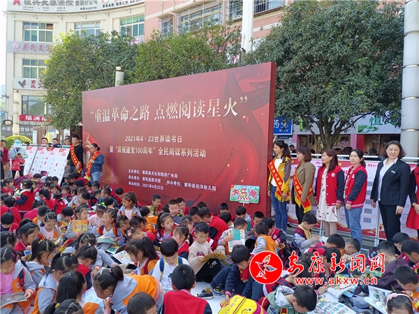 紫陽(yáng)縣文旅廣電局、縣圖書(shū)館、新華書(shū)店紫陽(yáng)分公司舉行“重溫革命之路·點(diǎn)燃閱讀星火”慶祝建黨100周年閱讀推廣活動(dòng),200余名幼兒參加了閱讀分享活動(dòng),并提供200余本黨史主題圖書(shū)和50本電子圖書(shū)供市民免費(fèi)閱讀。J99安康新聞網(wǎng)