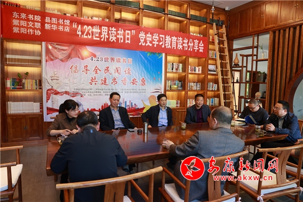 紫陽(yáng)縣文聯(lián)、紫陽(yáng)東來(lái)書(shū)院、縣作協(xié)等單位在東來(lái)書(shū)院開(kāi)展“世界讀書(shū)日”黨史學(xué)習(xí)教育讀書(shū)分享會(huì),廣大書(shū)友分享了百年黨史的閱讀體會(huì)和深切感悟,激發(fā)“學(xué)百年黨史,守初心情懷”的讀書(shū)情懷,營(yíng)造“以讀書(shū)求新知,以讀書(shū)強(qiáng)素質(zhì)、以讀書(shū)傳文明、以讀書(shū)筑夢(mèng)想”的全民閱讀氛圍。J99安康新聞網(wǎng)