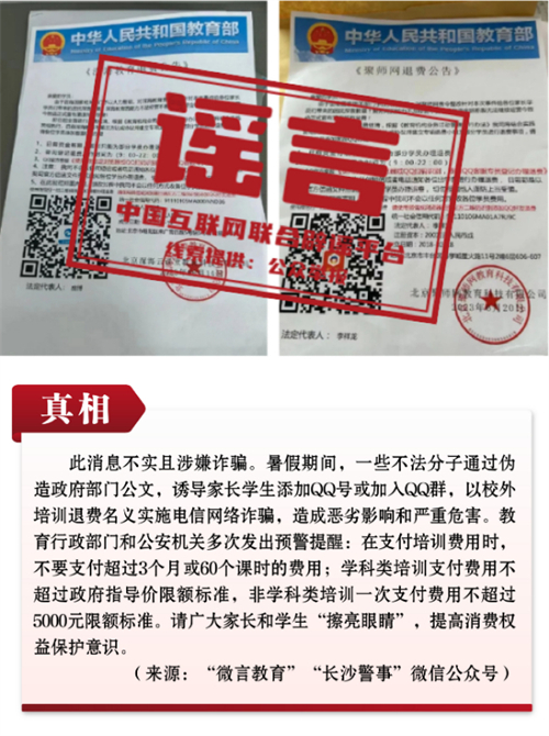謠言2:教育部發(fā)文責令某校外培訓(xùn)機構(gòu)退費?