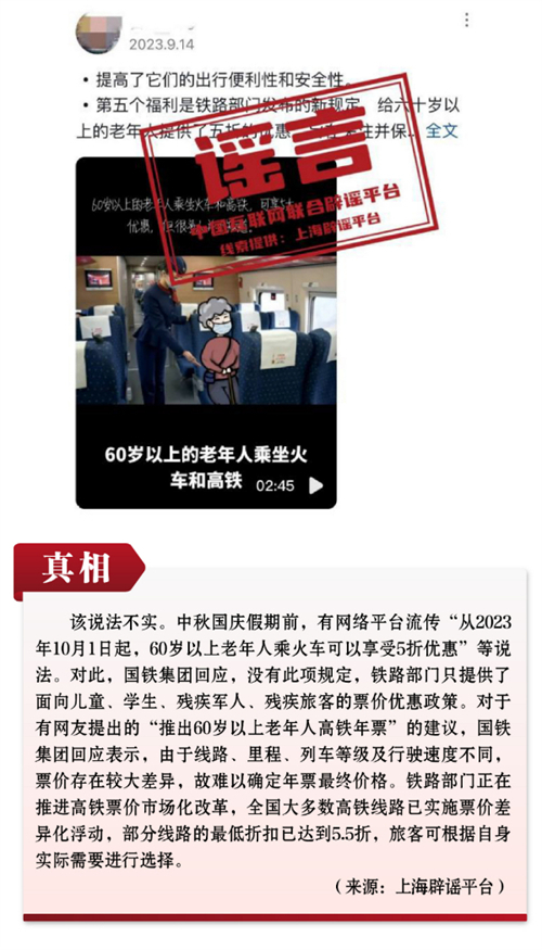 謠言3:今年國慶后老年人可半價(jià)購買火車票?