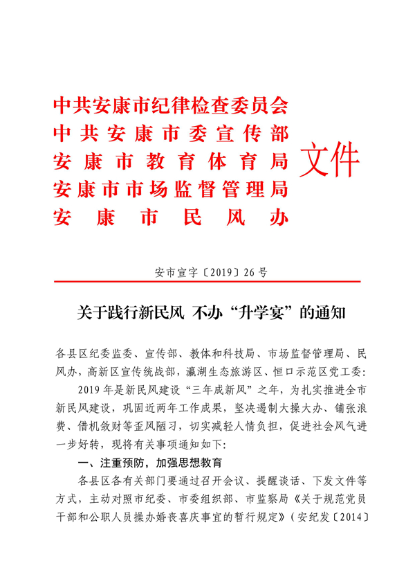 關(guān)于踐行新民風(fēng) 不辦“升學(xué)宴”的通知