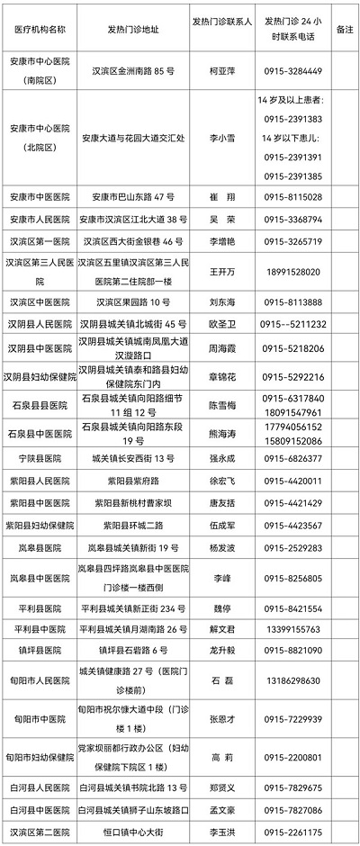 我市二級以上醫(yī)療機(jī)構(gòu)發(fā)熱門診公開信息
