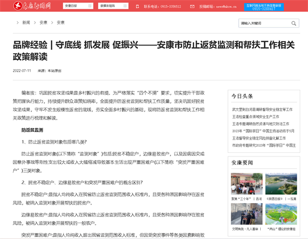 2022年,安康新聞網(wǎng)站準(zhǔn)確刊播政務(wù)消息,保證了政務(wù)消息、惠民政策消息及時準(zhǔn)確地傳播。發(fā)揮黨媒資源優(yōu)勢,準(zhǔn)確闡釋解讀市委、市政府的重要決策和惠民政策,刊出《我市9部門解讀宣傳9類44項(xiàng)政策》《守底線 抓發(fā)展 促振興——安康市防止返貧監(jiān)測和幫扶工作相關(guān)政策解讀》《安康出臺公積金階段性支持政策為企業(yè)和職工紓困解難》,從群眾關(guān)切入手,提升媒體服務(wù)質(zhì)量和為民服務(wù)意識。同時,搭建溝通平臺、反映百姓呼聲,及時發(fā)布動態(tài)信息以及醫(yī)療、出行、生活、辟謠等公共服務(wù)內(nèi)容,發(fā)揮主流媒體凝聚人心、推動發(fā)展、促進(jìn)和諧的作用。