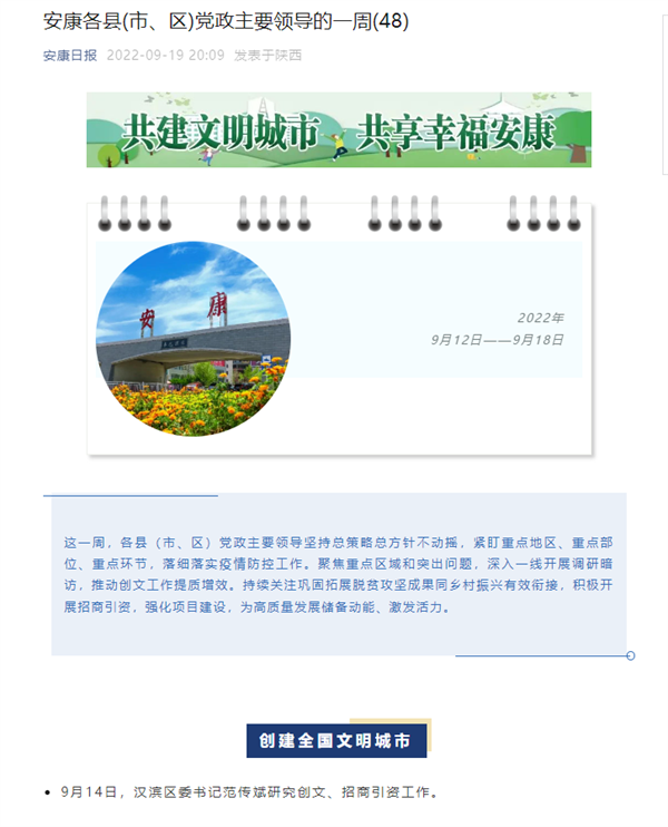 2022-09-19 微信“安康各縣(市、區(qū))黨政主要領(lǐng)導(dǎo)的一周”欄目