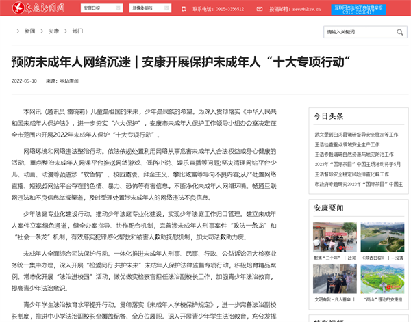 關(guān)注民生熱點(diǎn),彰顯為民情懷。積極做好民生政策類宣傳報(bào)道,圍繞教育、醫(yī)療、就業(yè)、食品安全、養(yǎng)老等民生熱點(diǎn),注重反映少數(shù)民族、婦女、兒童、老年人、殘疾人等意見呼聲,刊發(fā)了《預(yù)防未成年人網(wǎng)絡(luò)沉迷 | 安康開展保護(hù)未成年人“十大專項(xiàng)行動”》《民族團(tuán)結(jié)之花常開長盛》《寧陜:為癱瘓老人上門辦證 譜寫警民暖心故事》等報(bào)道。
