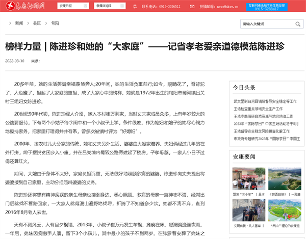 堅(jiān)持以人為本報(bào)道理念,充分凸顯人文精神。報(bào)道《榜樣力量 | 陳進(jìn)珍和她的“大家庭”——記省孝老愛親道德模范陳進(jìn)珍》《安康市第三屆自強(qiáng)不息道德模范王庭德開展勵志宣講報(bào)告會》《孫自立:自強(qiáng)同奔共富路》等,啟迪思想,溫潤心靈,詮釋真善美。