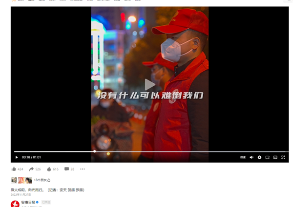 利用視頻號、抖音、微信等矩陣平臺,采編發(fā)布《“下”到一線 “沉”出擔(dān)當(dāng)》《干部下沉“疫線” 志愿服務(wù)綻光彩》《致敬!堅(jiān)守防疫一線的最美逆行者》等一批鮮活的現(xiàn)場短視頻新聞20余件,生動展示抗疫一線的管控動態(tài)、志愿服務(wù)、文明實(shí)踐以及廣大干群奮戰(zhàn)一線的典型事跡等;同時精心策劃制作《微火成炬 向光而行》《致敬“逆行者” 安康加油!》《眾志成城 攜手抗疫——市民說防疫》等宣傳片,及其他科普性短視頻8件,文圖聲視融合,發(fā)揮跟帖評論作用,開展轉(zhuǎn)發(fā)、評論、點(diǎn)贊等微互動,積極營造強(qiáng)信心、暖人心、聚民心的網(wǎng)上輿論氛圍,凝聚起共克時艱的精神動力。