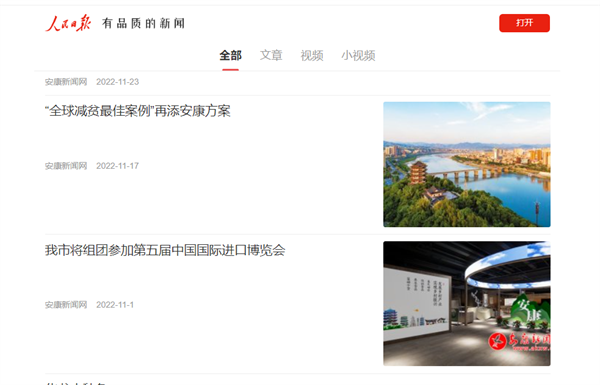 安康新聞網(wǎng)分別入駐人民網(wǎng)人民視頻、央視新聞等平臺,不斷推送原創(chuàng)優(yōu)質(zhì)內(nèi)容,《“全球減貧最佳案例”再添安康方案》《我市將組團(tuán)參加第五屆中國國際進(jìn)口博覽會》等一批稿件,極大地提升了安康城市形象,促進(jìn)對外宣傳;二十大召開前后,發(fā)布推送中央媒體、省級權(quán)威媒體最新報(bào)道,網(wǎng)站運(yùn)營的安康日報(bào)微信視頻號轉(zhuǎn)載推送中國共產(chǎn)黨國際形象網(wǎng)宣片《CPC》等中央媒體重要視頻10余件,傳遞安康好聲音,講好中國故事,促進(jìn)文化交流。