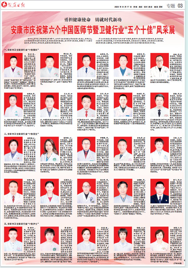 (2023年8月17日安康日?qǐng)?bào)03版《安康市第六個(gè)中國醫(yī)師節(jié)暨衛(wèi)健行業(yè)“五個(gè)十佳”風(fēng)采展》)