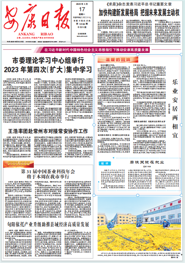 (2023年4月17日安康日?qǐng)?bào)01版開設(shè)“在習(xí)近平新時(shí)代中國特色社會(huì)主義思想指引下推動(dòng)安康高質(zhì)量發(fā)展”“溫暖的回響”欄目)