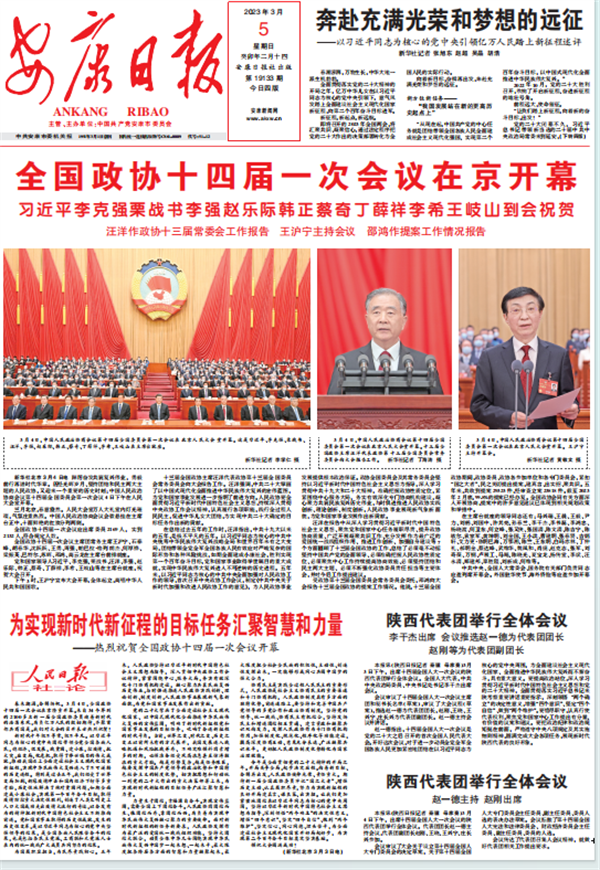 (2023年3月5日安康日?qǐng)?bào)01版《全國政協(xié)十四屆一次會(huì)議在京開幕》)