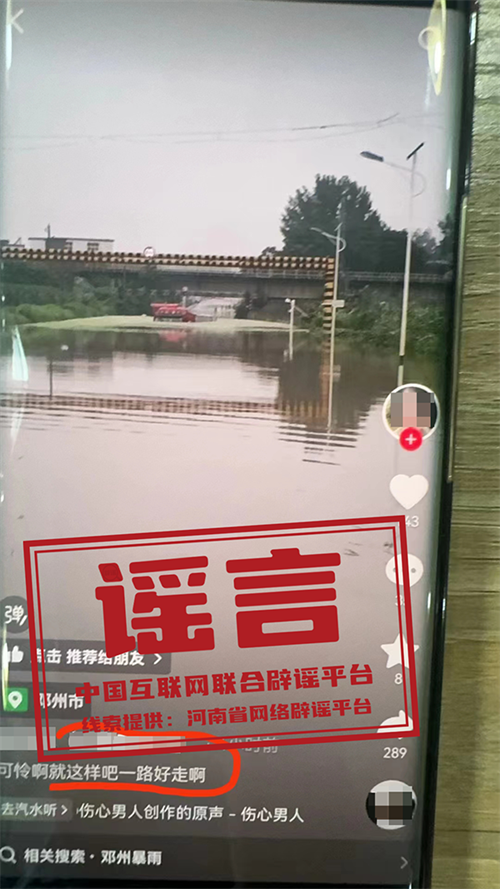 7月15日,網(wǎng)民“神x”在某短視頻平臺(tái)發(fā)布“貨車司機(jī)被淹”視頻,并配文稱“可憐啊,就這樣吧,一路好走”。經(jīng)核實(shí),7月14日,鄧州市鐵路橋下一外地牌照貨車被淹,車內(nèi)被困人員已被成功救出,無(wú)人員傷亡,該信息與事實(shí)嚴(yán)重不符,系虛假信息。