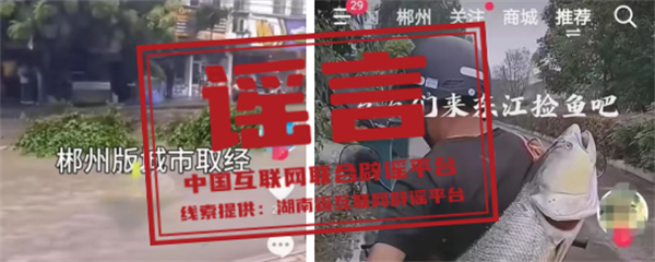 7月28日,某短視頻平臺(tái)出現(xiàn)兩段視頻,一段是城市街道被洪水淹沒(méi)并配文“郴州版城市取經(jīng)”的視頻;另一段是暴雨過(guò)后在積水中抓魚并配文“友友們來(lái)東江撿魚吧”的視頻。經(jīng)湖南郴州網(wǎng)信部門核實(shí),相關(guān)視頻系網(wǎng)民惡意拼湊,郴州并未出現(xiàn)視頻所述情況。網(wǎng)信部門已將謠言線索移交公安部門依法處置。