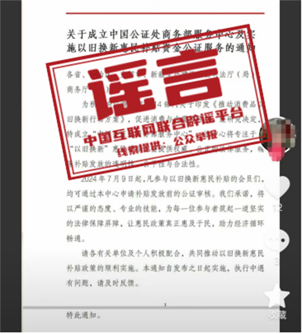 辟謠:商務(wù)部發(fā)布聲明:從未發(fā)布《關(guān)于以舊換新惠民款補(bǔ)貼發(fā)放的公證通知》