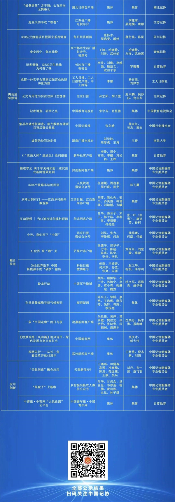 公示截止日期為2024年11月3日。在此期間,社會各界可通過電話、傳真、信函或電子郵件等方式發(fā)表意見。中國記協(xié)評獎辦公室將認(rèn)真受理,按照《評選辦法》規(guī)定對有關(guān)舉報進(jìn)行核查,并提出處理意見報評委會主任會議決定。