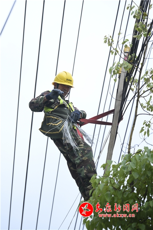 7月24日早上,在巴山東路劉家砭地段電信通信工作人員線纜整治。(豐玉珍 )