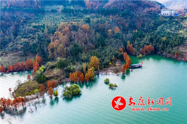 深秋時(shí)節(jié),蔚藍(lán)的天空一塵不染,晶瑩明澈,朵朵云霞映照在碧波如洗的瀛湖水間,分外絢麗。nmc安康新聞網(wǎng)