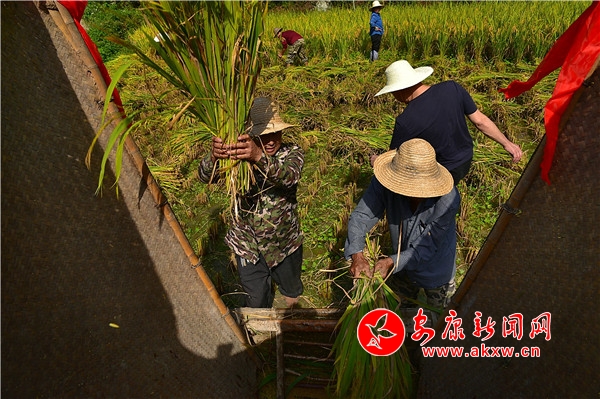 秋日,平利鄉(xiāng)村田園間梯田層層,稻浪滾滾,飽滿的谷穗壓彎了稻桿,放眼望去,遍野鋪金,空氣中也彌漫著淡淡的稻香。在西河鎮(zhèn)女媧山村三里溝原生態(tài)水稻田里,人們按照傳統(tǒng)的習俗和方式收割水稻,數(shù)十位村民手持鐮刀一字排開,迅速揮舞著手中的鐮刀,將金黃的稻穗割下并整齊的堆放。打谷人則分為兩組,兩人一組,交叉替換的將手中的稻秧在拌桶里反復甩打脫粒,拌谷聲“嘭呲嘭呲”有節(jié)奏地作響,聲勢頗為壯觀。與此同時,廣佛鎮(zhèn)松河村李家坡的農(nóng)家小院已堆滿收回來的苞谷,郭老漢正在將苞谷殼撕開,編成串掛在屋檐下的竹竿上晾曬,金黃的苞谷棒子整齊排列,儼然一幅鄉(xiāng)村小院秋實圖。