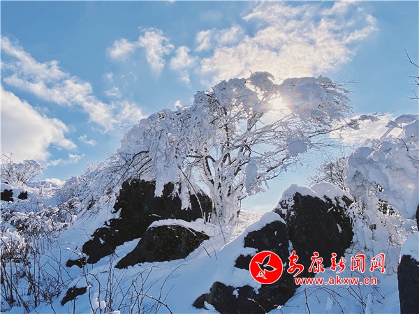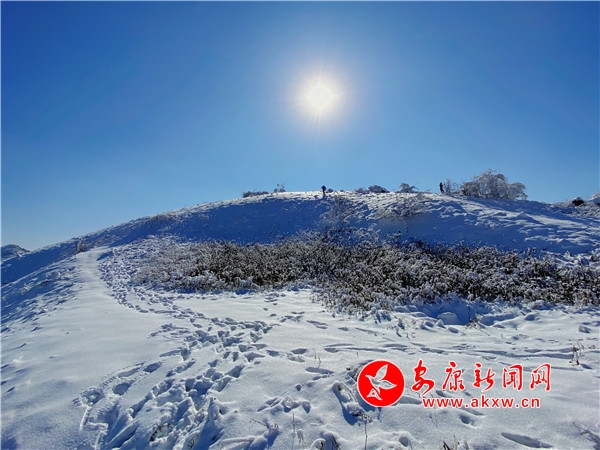 陽光透過樹縫,灑向白茫茫的草甸,萬物潔凈如新。站在草甸之上,環(huán)顧四周,美景盡收眼底,山舞銀蛇襯之藍天雪地,讓人嘆為觀止。