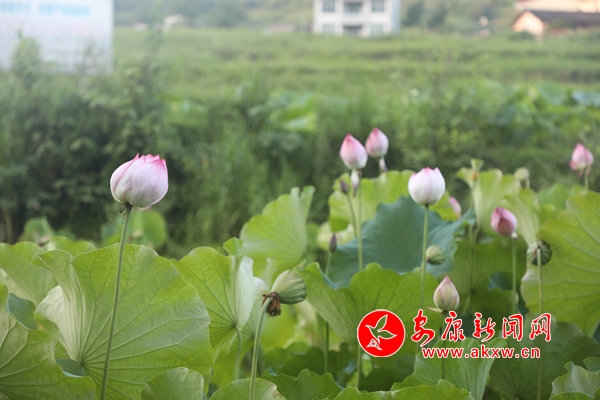 荷葉碧綠,荷花盛開。在七月驕陽的照耀下,伴隨著鳥叫和蟬鳴,漢濱區(qū)沈壩鎮(zhèn)花紅村的灼灼荷花如期而至,與美麗鄉(xiāng)村形成一道靚麗的獨(dú)特風(fēng)景。(鄭時(shí)根 攝)zei安康新聞網(wǎng)
