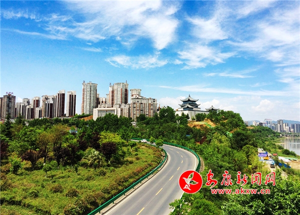夏至前后,安康天氣持續(xù)晴好。一河二岸、江南江北,在藍(lán)天白云的映襯下,處處呈現(xiàn)出靚麗硬朗的現(xiàn)代氣息。(趙波 攝Cba安康新聞網(wǎng)
